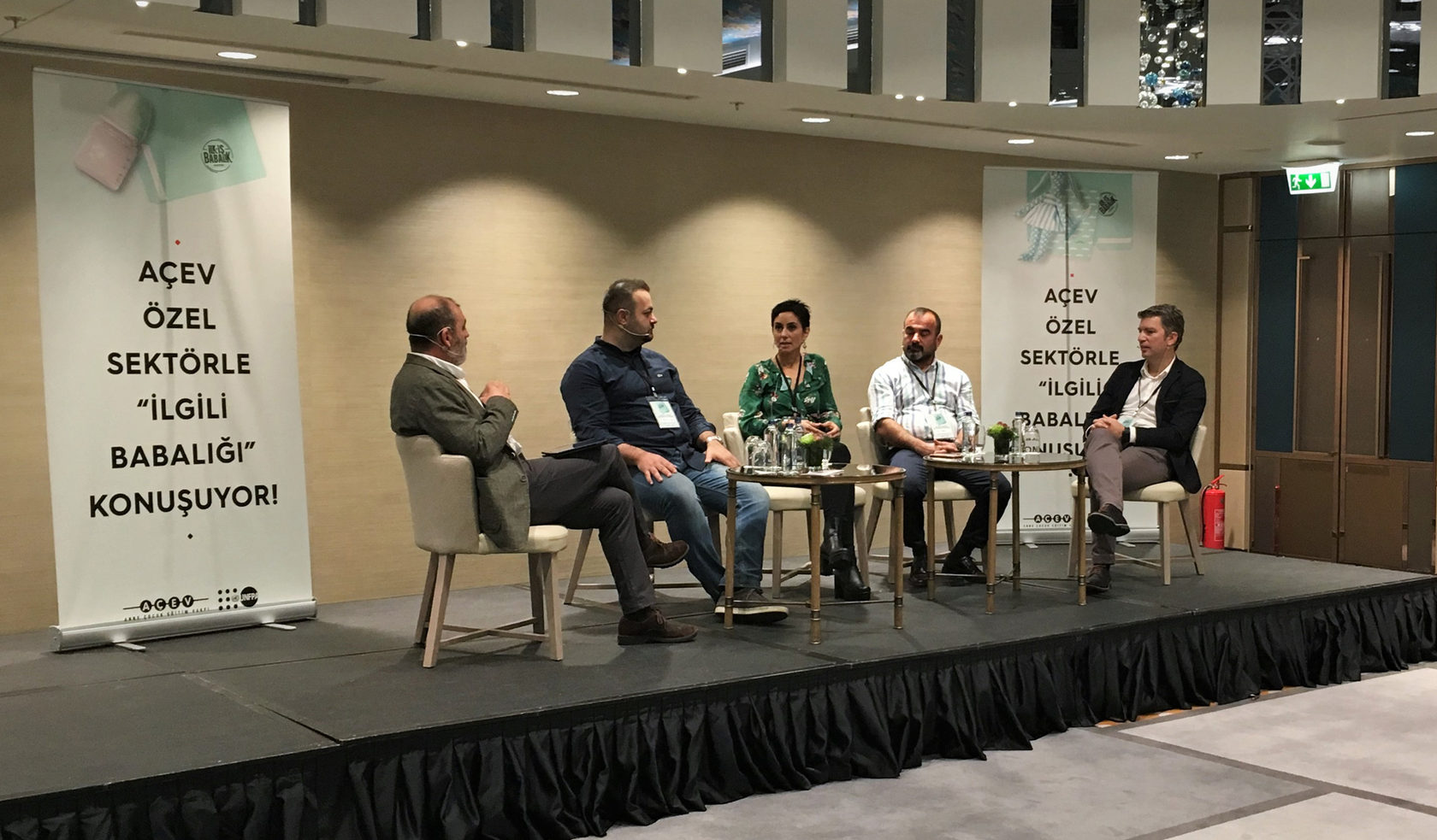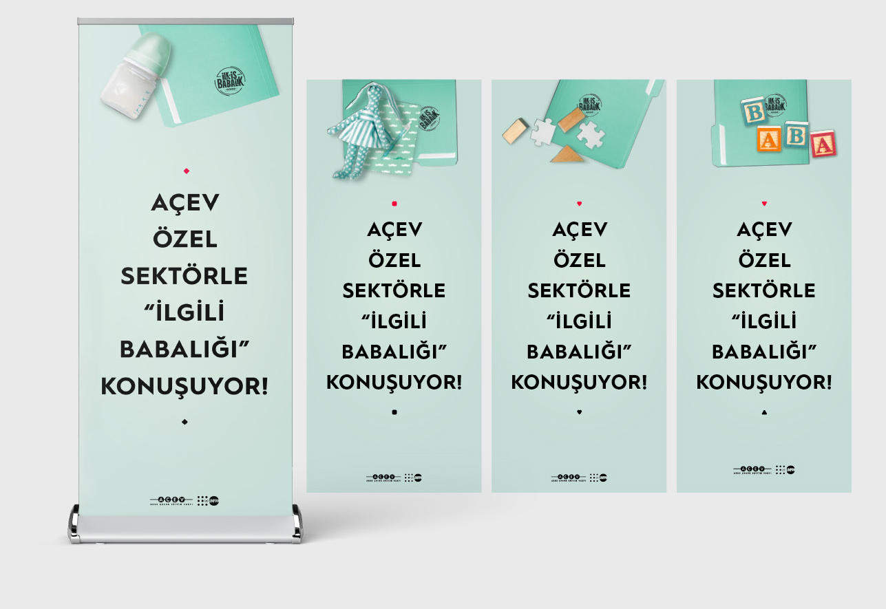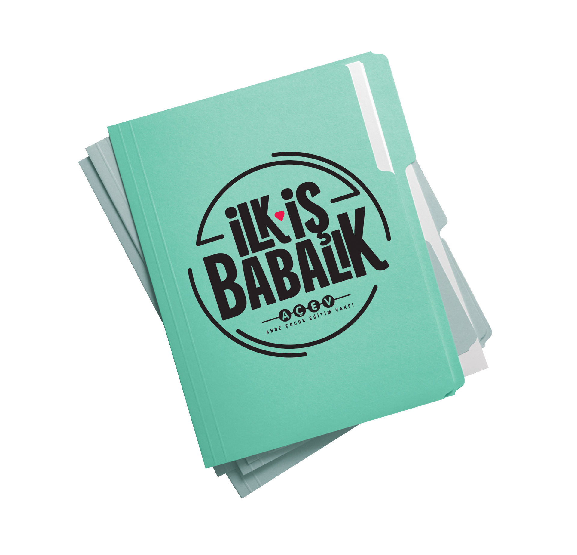 Event identity for "First Job: Fatherhood" conferences, hosted by the non-profit organization AÇEV (Mother Child Education Foundation). The event targeted business owners, brands from the childcare industry and media companies; inviting them to implement a more active role of fatherhood in their business and communication strategies.