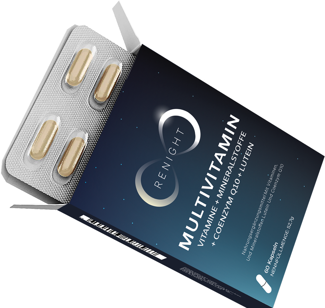 Renight is a German bedtime supplement that works overnight, replenishing your energy and body while you sleep.